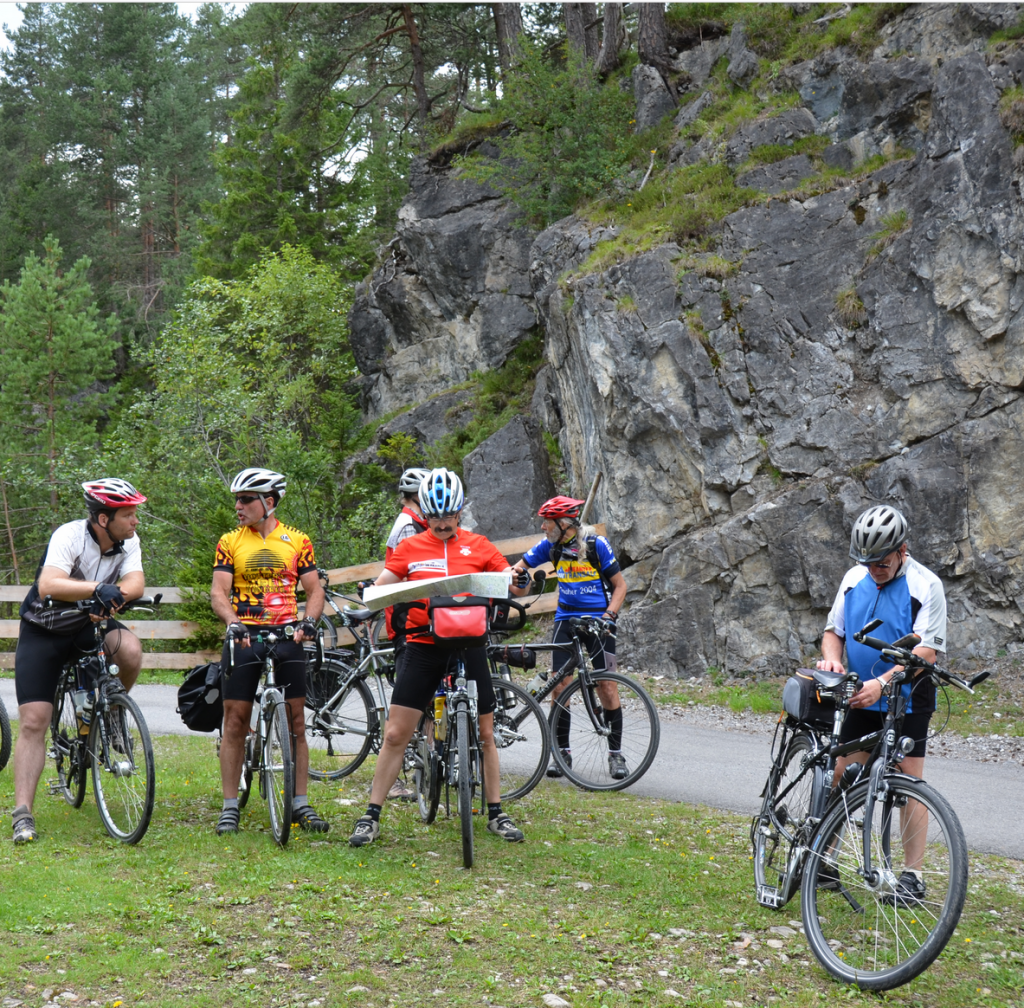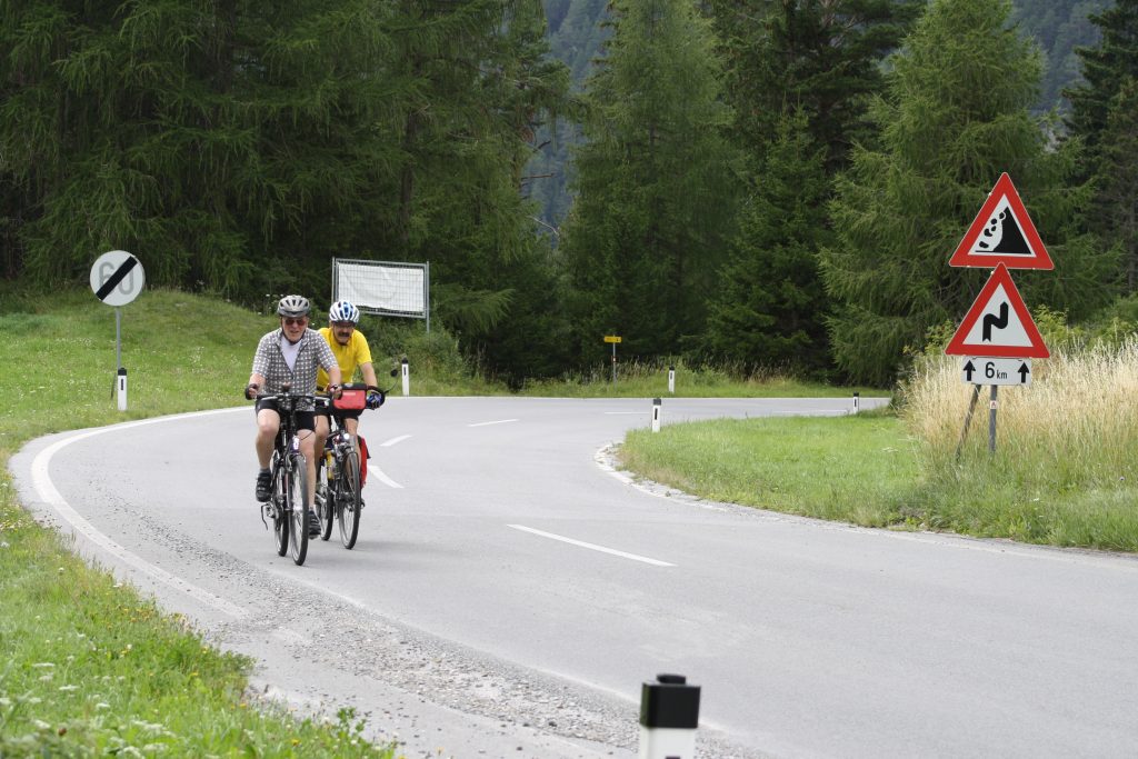 Wir queren 4x Landesgrenzen und überwinden 2 Pässe. Von Landeck folgen wir weiter dem Inntal aufwärts, überwinden den Finstermünsterpass Schweiz, folgen der Strasse bis Martina (Italien), ab hier geht es in 11 Kehren bergauf, belohnt werden wir durch eine 1,6 km lange Abfahrt nach Nauders. Zum guten Schluss geht es über den Reschenpass – danach geht es fast nur noch bergab. Eine traumhaft schöne und auch schnelle Abfahrt ins Vinschgau erwartet uns, bevor wir das Tagesziel im Raum Mals erreichen ca. 95 km / ca. 1.550 Höhenmeter