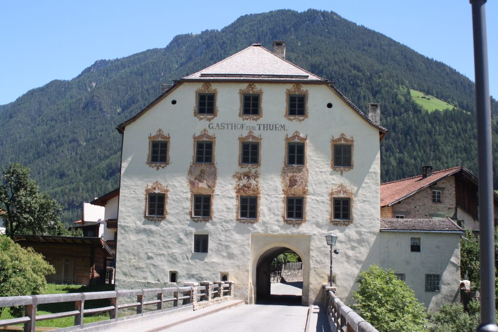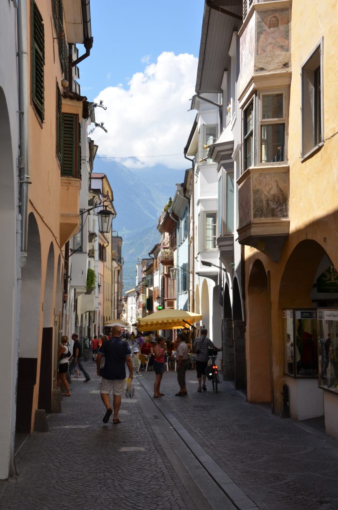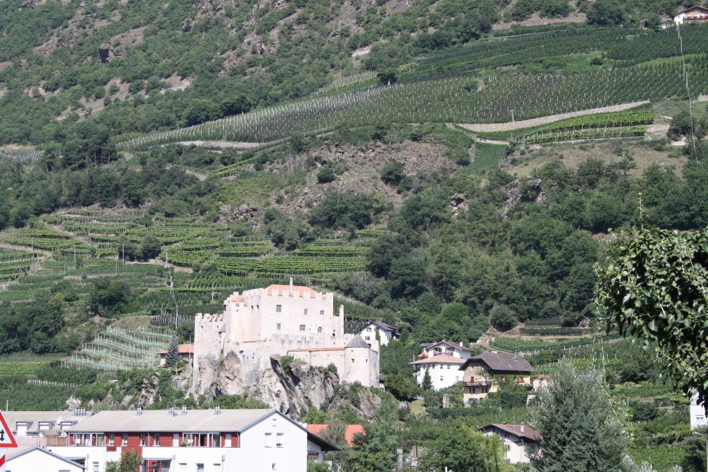 Es geht überwiegend bergab. Charakteristisch sind die Obstplantagen. An den Hängen sehen wir immer wieder Schlösser Burgen, u.a. Kastell Bell und auch Schloss Juval, dass von Reinhold Messner bewohnt wird. Ein weiteres Highlight ist Meran (300m ü. N.N.). Ab hier verlassen wir die Via Claudia Augusta, dafür wird uns das Rauschen der Passer bei unserem „Aufstieg“ bis St. Leonhard nicht mehr verlassen. Übernachtung im Raum St. Leonhard. ca. 86 km / ca. 480 Höhenmeter